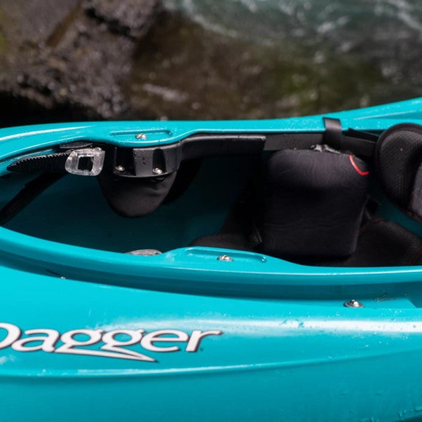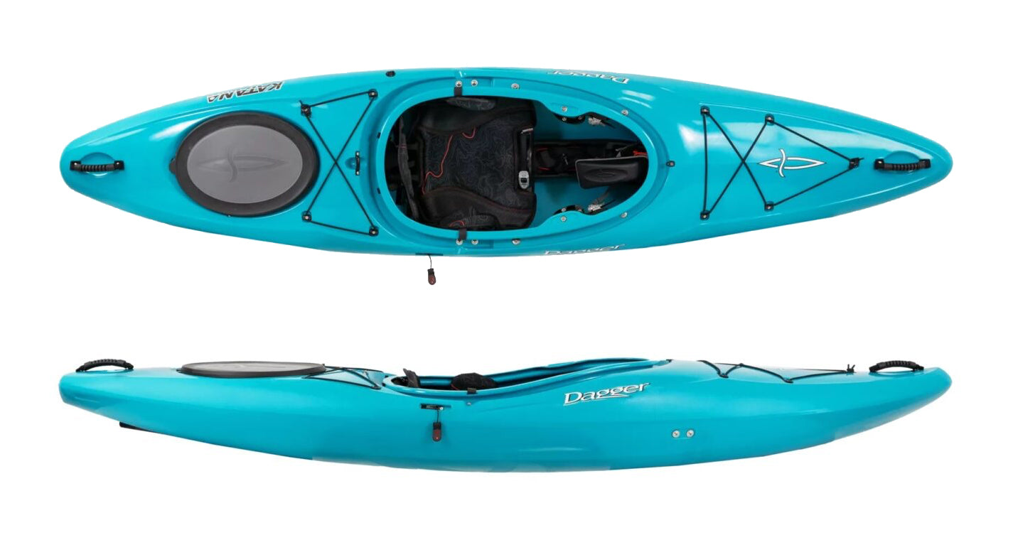 The hull is designed for initial stability while the beveled and flared side-walls create secondary stability. The rounded stern deck shape, taken from the Mamba design, sheds water easily, making it forgiving in moving water. The Katana also offers a more spacious cockpit than traditional whitewater designs for a less confining feeling. Removable bulkheads and reinforced hatches offer unparalleled gear storage, while the drop skeg add speed and stability.