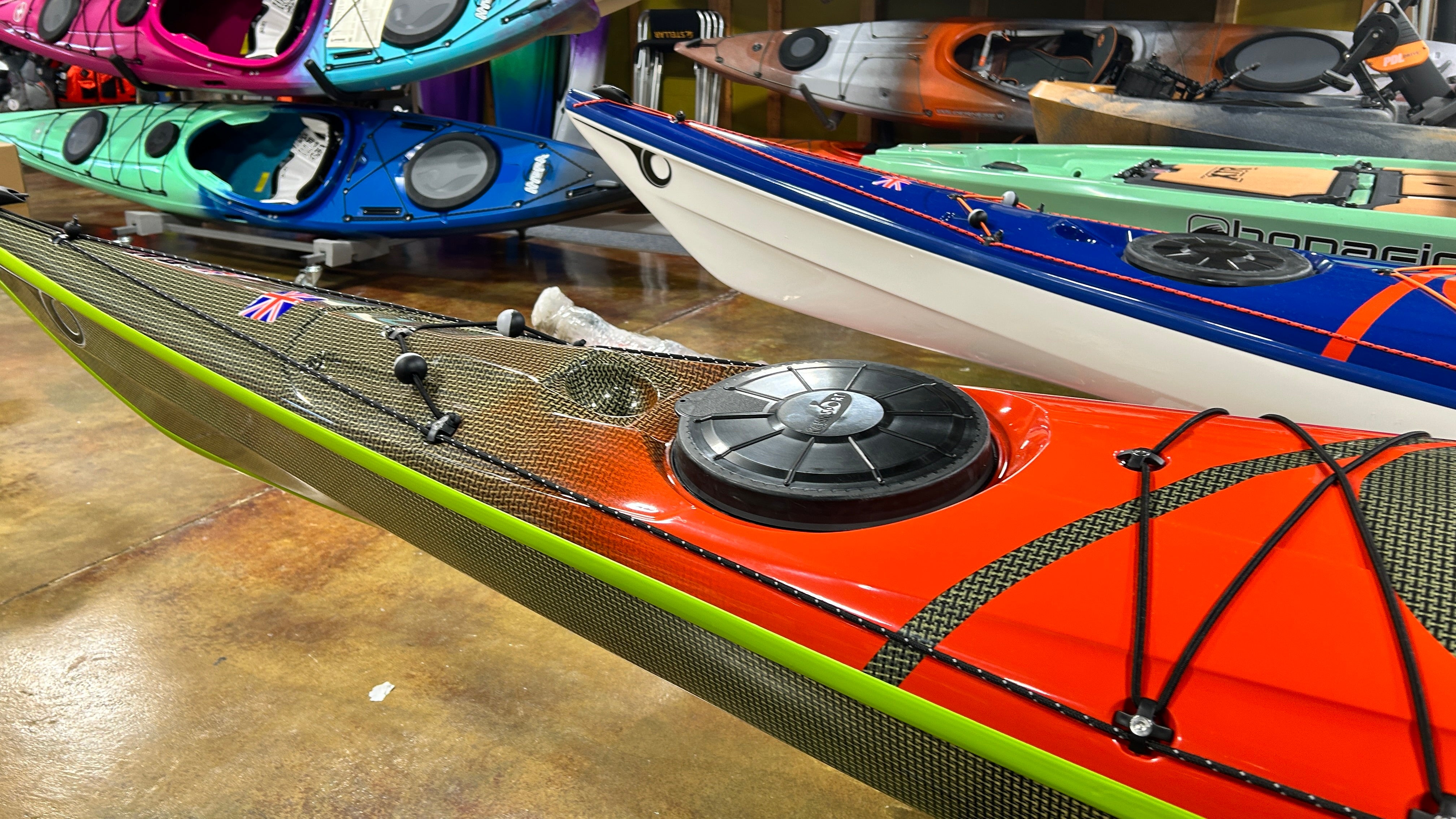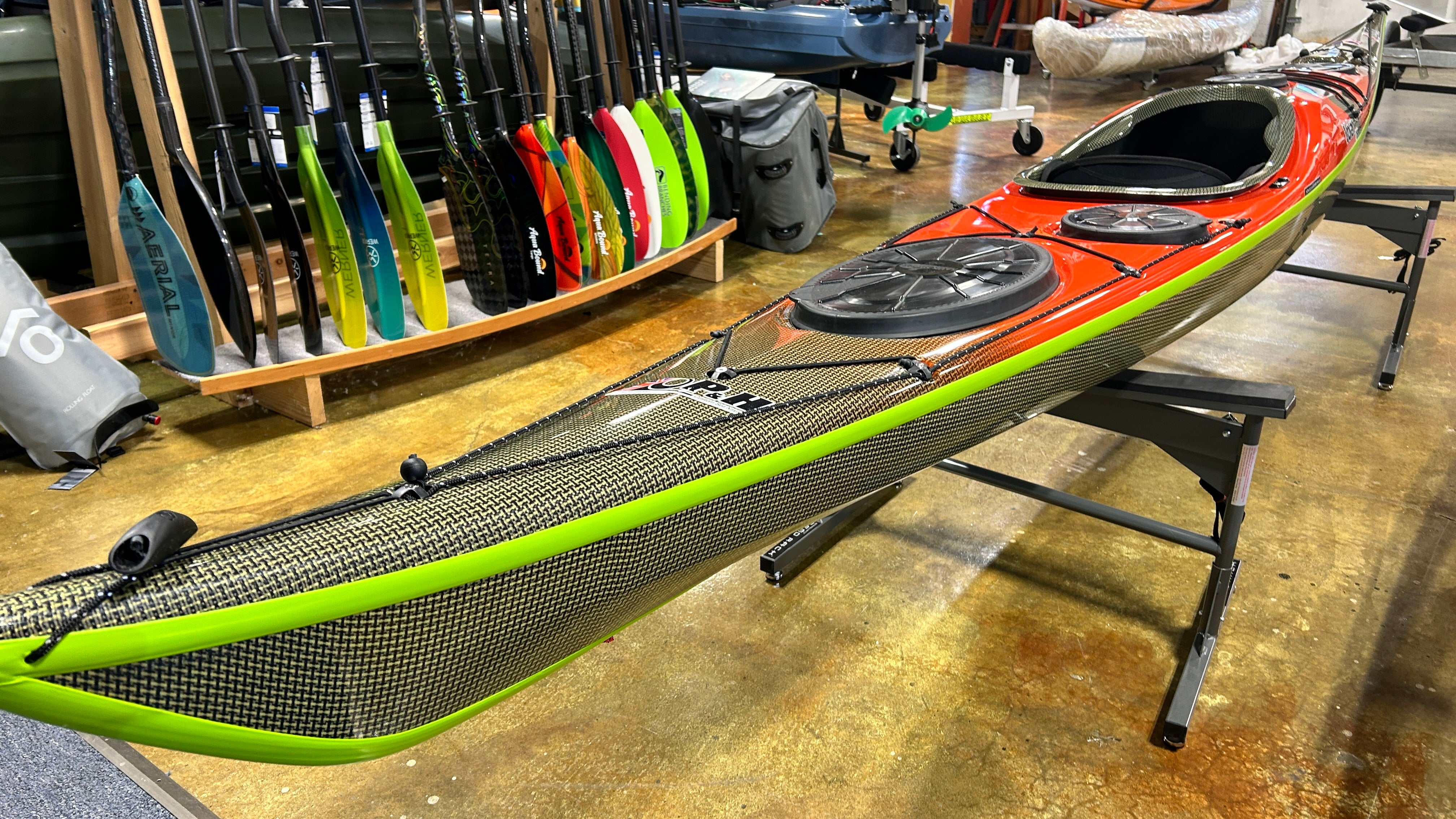 Three layups available - Lightweight, with infusion carbon/Kevlar hull, Ultralight with all carbon/Kevlar and color-fade deck, and Expedition weight, for those looking for ultimate durability. Colors shown are on order for stock, but custom built is always available (lead time 5 to 7 months for custom). On Ultralight boats, standard is color fade on the deck to the natural carbon or carbon/aramid.